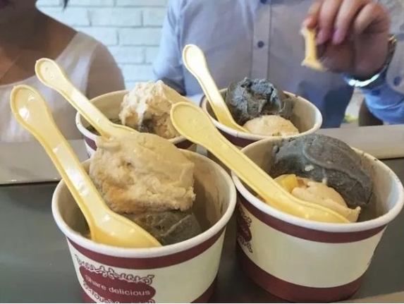 這種冰激凌是由我公司研發的濕法超細精磨機制成,它能將果蔬谷物皮渣纖維百分百全利用,最快只需要50秒,